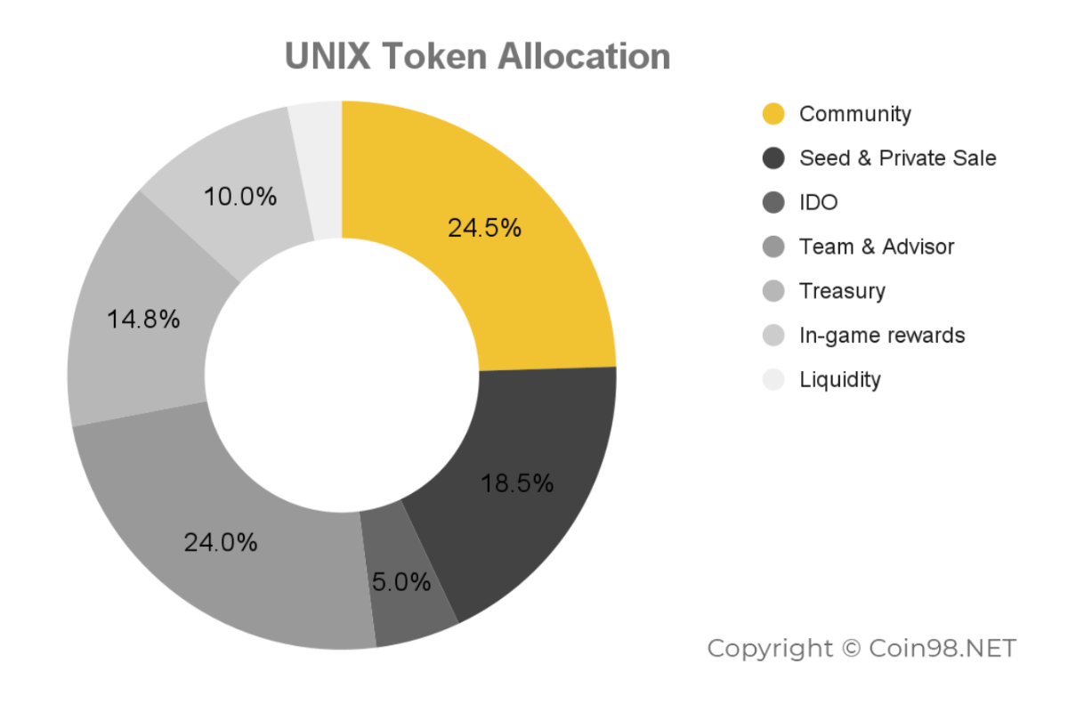Hiện tại vẫn có chưa có thông tin đầy đủ về lịch trả UNIX token; dự án mới chỉ công bố vesting schedule dành cho đội ngũ dự án, cố vấn và các nhà đầu tư vòng Seed và Private: