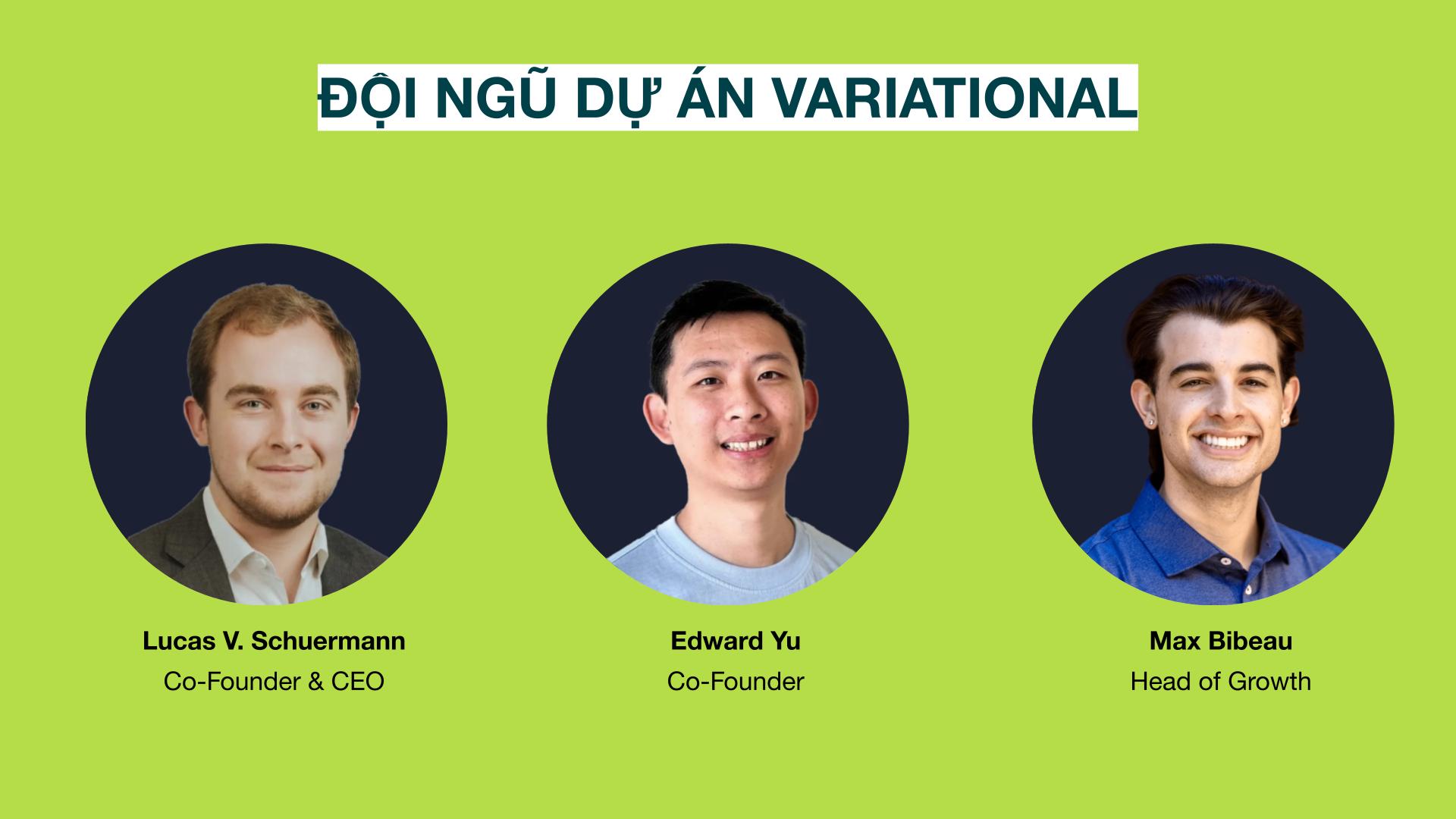 - Max Bibeau (Head of Growth): Ông chịu trách nhiệm mở rộng cộng đồng và tăng trưởng người dùng cho Variational, tập trung vào marketing và hợp tác với các bên liên quan.