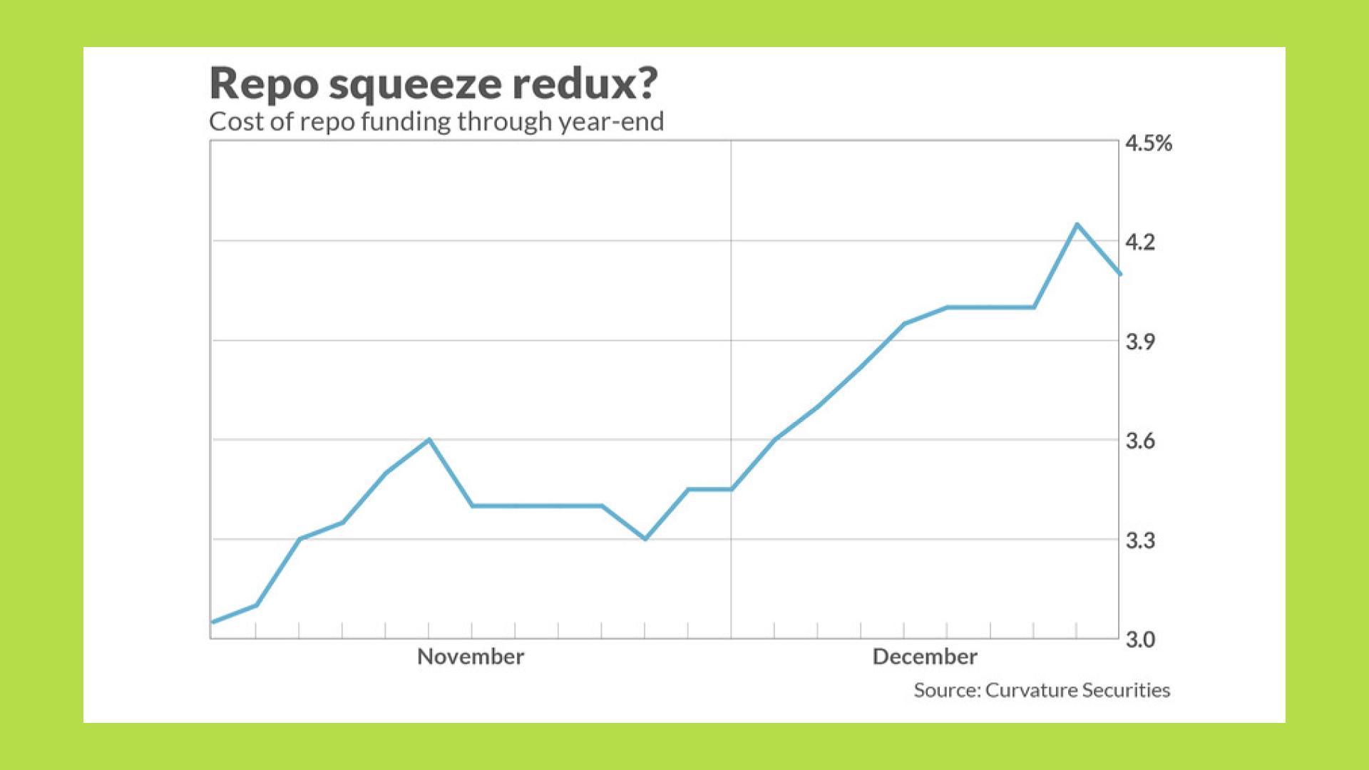 Dấu hiệu rõ nhất đến từ repo market, nơi các tổ chức tài chính vay mượn USD ngắn hạn. Cuối năm 2025, chi phí repo tăng mạnh từ khoảng 3.1% lên 4.2%, trong khi lãi suất điều hành chỉ ở mức 3.75%. Việc repo rate cao hơn lãi suất của Fed khoảng 45-55 điểm cơ bản cho thấy hệ thống đang thiếu USD ngắn hạn. Khi điều này xảy ra, các ngân hàng buộc phải giữ tiền mặt nhiều hơn và giảm nắm giữ tài sản rủi ro, thay vì bơm vốn ra thị trường.
