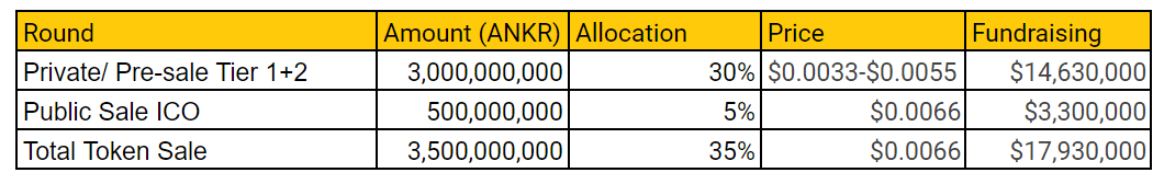 - Public Sale ICO: 5% (500,000,000 ANKR).