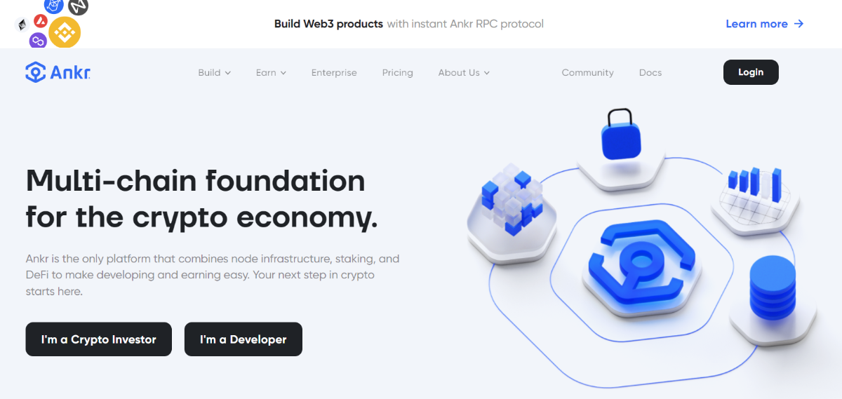 Ankr makes accessing Web 3.0 easy. Ankr offers distributed, a multi-cloud blockchain infrastructure for one-click node deployment and management as well as instant API (application programming interface) access to major blockchains and DeFi protocols for developers.