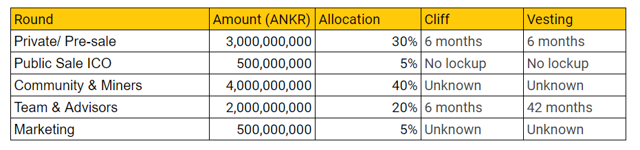 - Team & Advisors: 20% (2,000,000,000 ANKR).