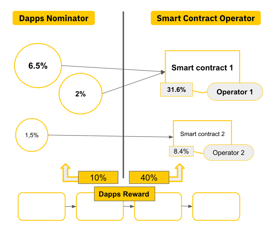 As can be seen from the illustrated picture, 50% rewards going to developers will continue to be divided into two parties: 10% for nominators and 40% for operators.