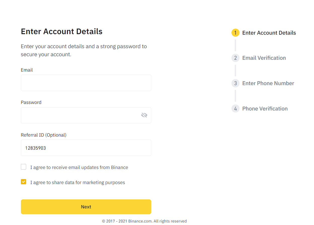 How to register account on Binance Exchange