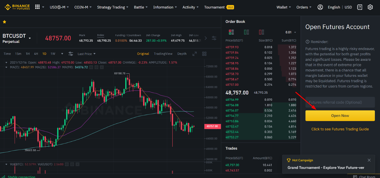 Step 2: Click Open now to open an account for trading futures.