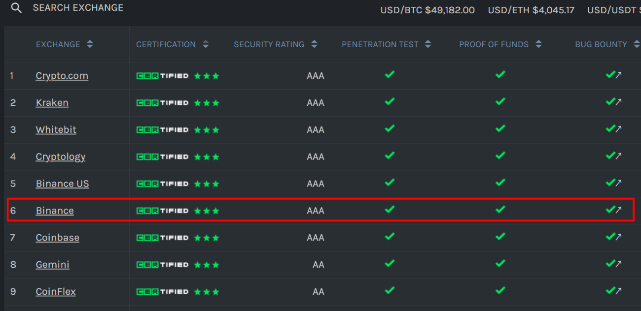 Binance is ranked at the highest security level by security rating agency CER.live for security rating. In addition, Binance is also on the list of The Best Crypto Exchanges Of 2021 by Forbes Advisors.