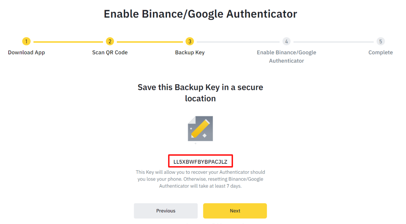 Step 5: Save your Backup Key to recover your Google Authenticator account in case you lose your phone.