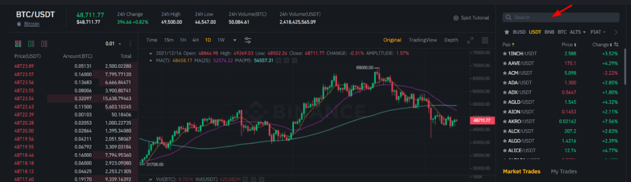 Step 1: Enter the pair of coins/ tokens you want to trade.