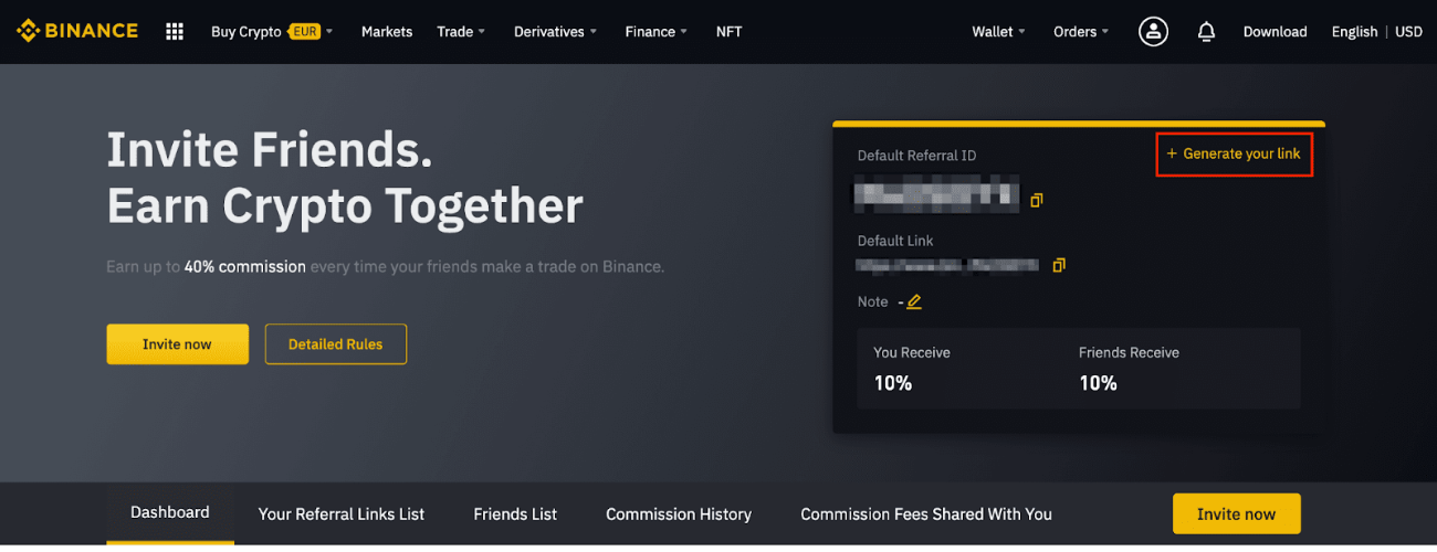 By introducing friends to use Binance through your referral code, you can earn a commission from Binance. To check the detailed information on the Referral Program, click here.