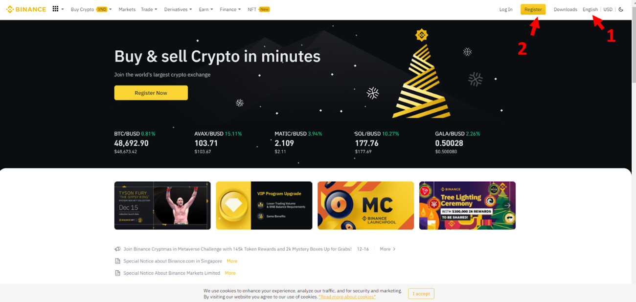 Step 1: Go to the main website of Binance: