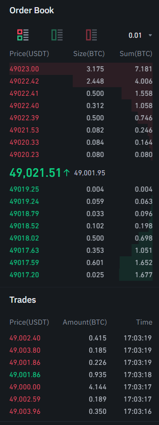 Section 3: Order book and Trades