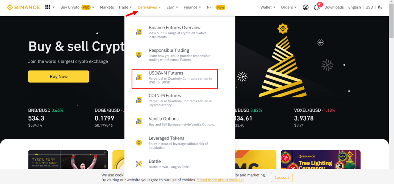 Step 1: At the homepage, go to Derivatives, then click USDⓈ-M Futures.