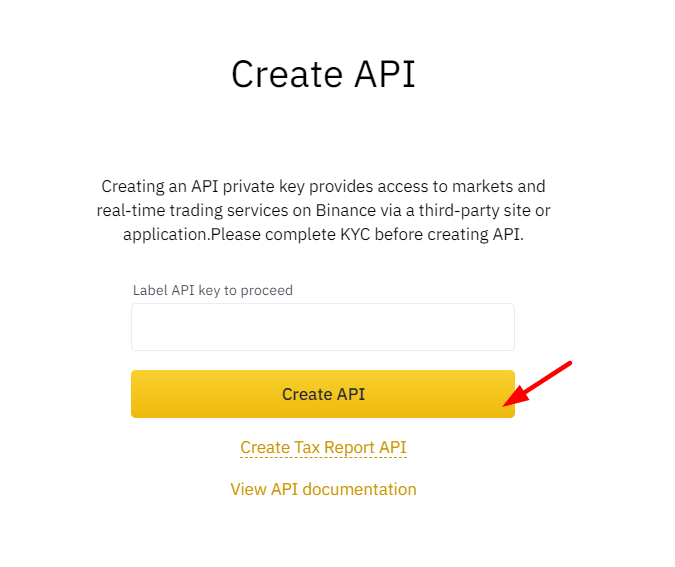 Step 2: Enter a label/name for your API key and click Create API.