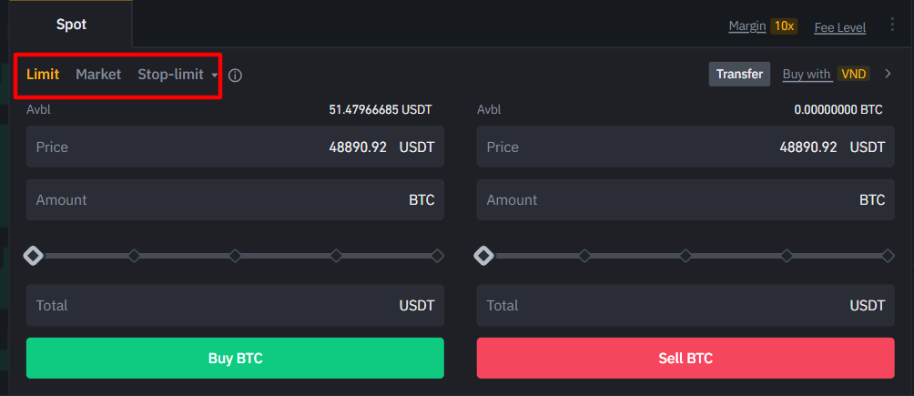 There are some basic orders you can choose when trading on Binance: