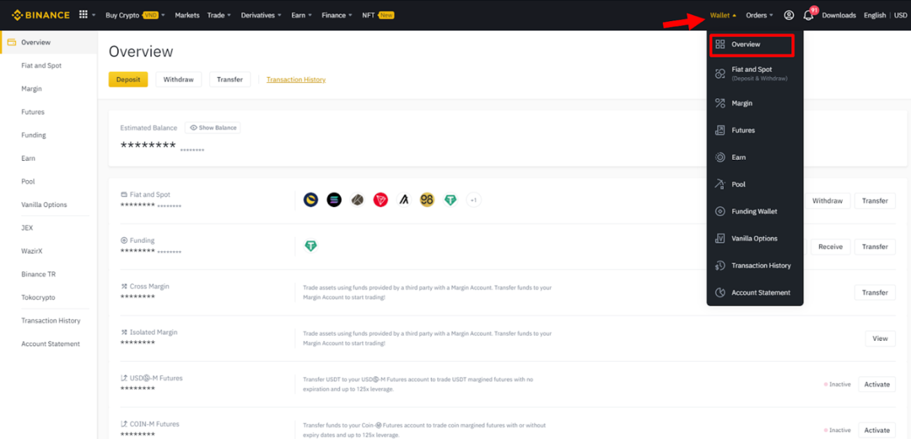 Step 1: Click Wallet and choose Overview.