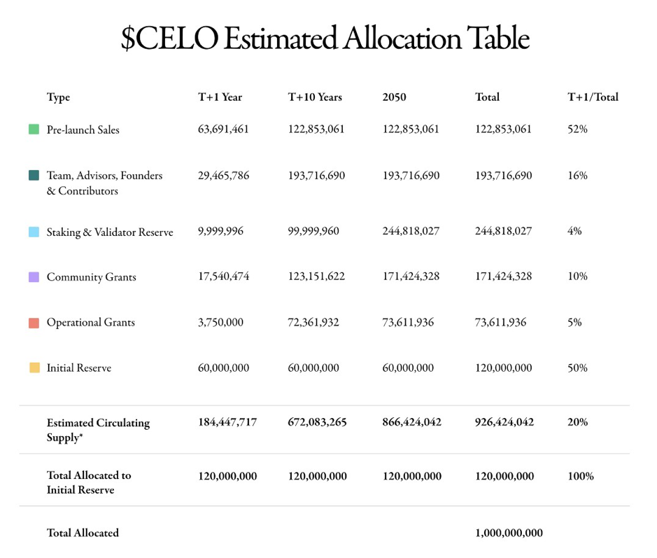- Private Sale 2: IDO on Coinlist on May 11 for $1/CELO, with a discount of 25% for investors who accept an additional 3-year lockup.