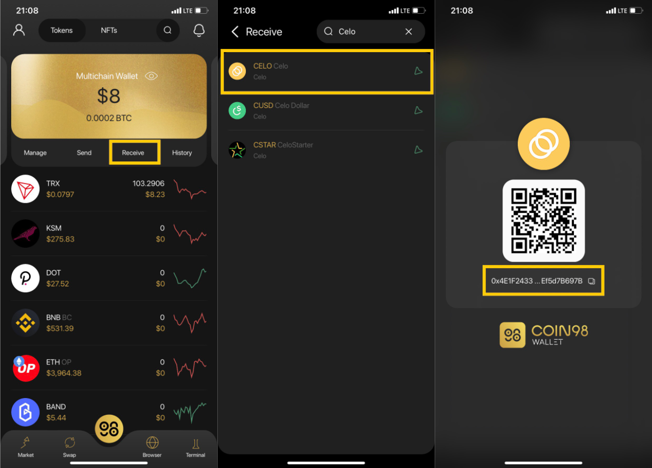You can store CELO token on Coin98 Super Wallet with these simple steps: