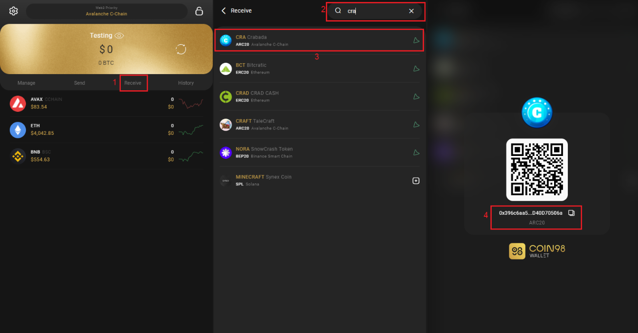You can store CRA CRA on Coin98 Wallet with these steps: