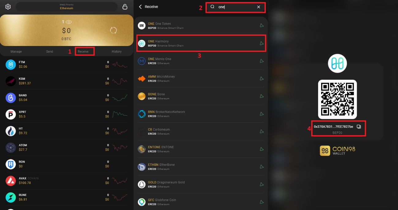 You can store ONE on Coin98 Wallet with these steps: