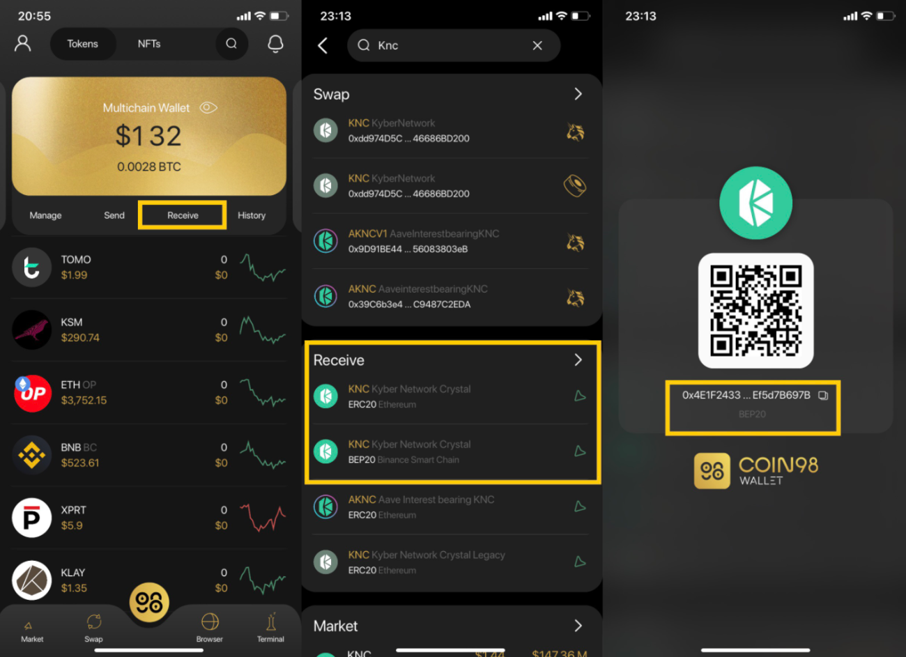 You can store KNC token on Coin98 Wallet with these simple steps: