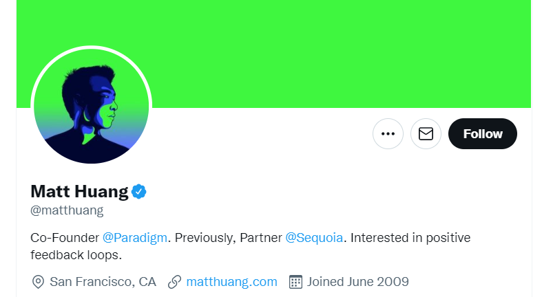 Matt Huang is the other co-founder of Paradigm and the former partner at Sequoia Capital. Like Fred, he began doing startups as the founder of Hotspots invested by YCombinator. He also invested in tech companies such as Bytedance and Instacart and bought the first Bitcoin in 2012.