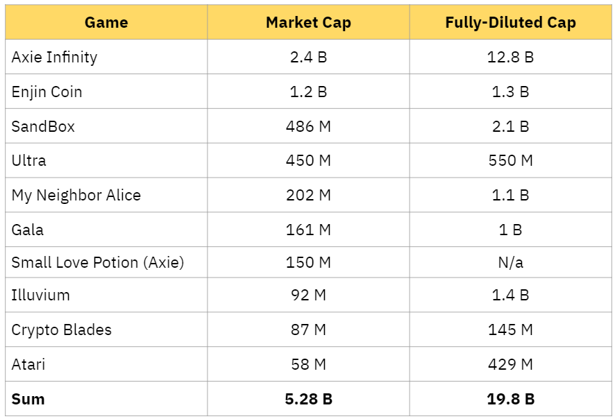 At the same time, the percentage of in-game revenue can escalate to 77%. Combining the total Market Cap of the current top 10 on-chain games (which mostly account for the Market Cap of the whole on-chain gaming sector), it can be clearly demonstrated that this market is still immature and has lots of room for growth.