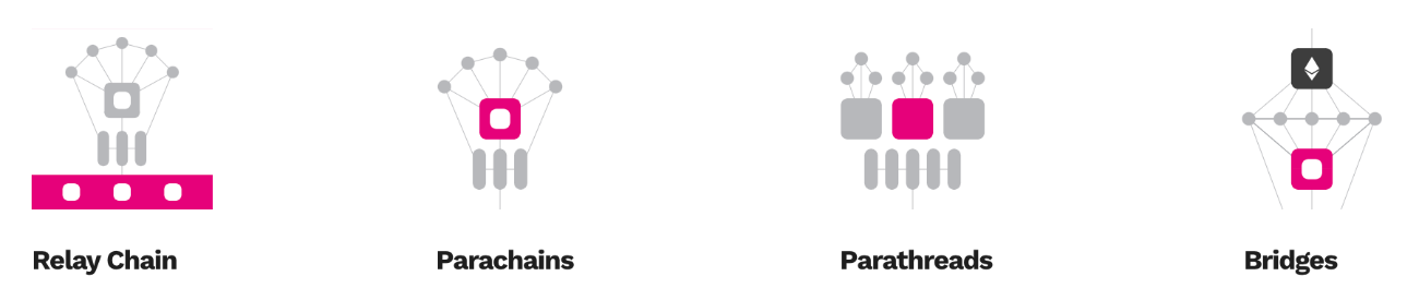 Polkadot's network consists of 4 main components:
