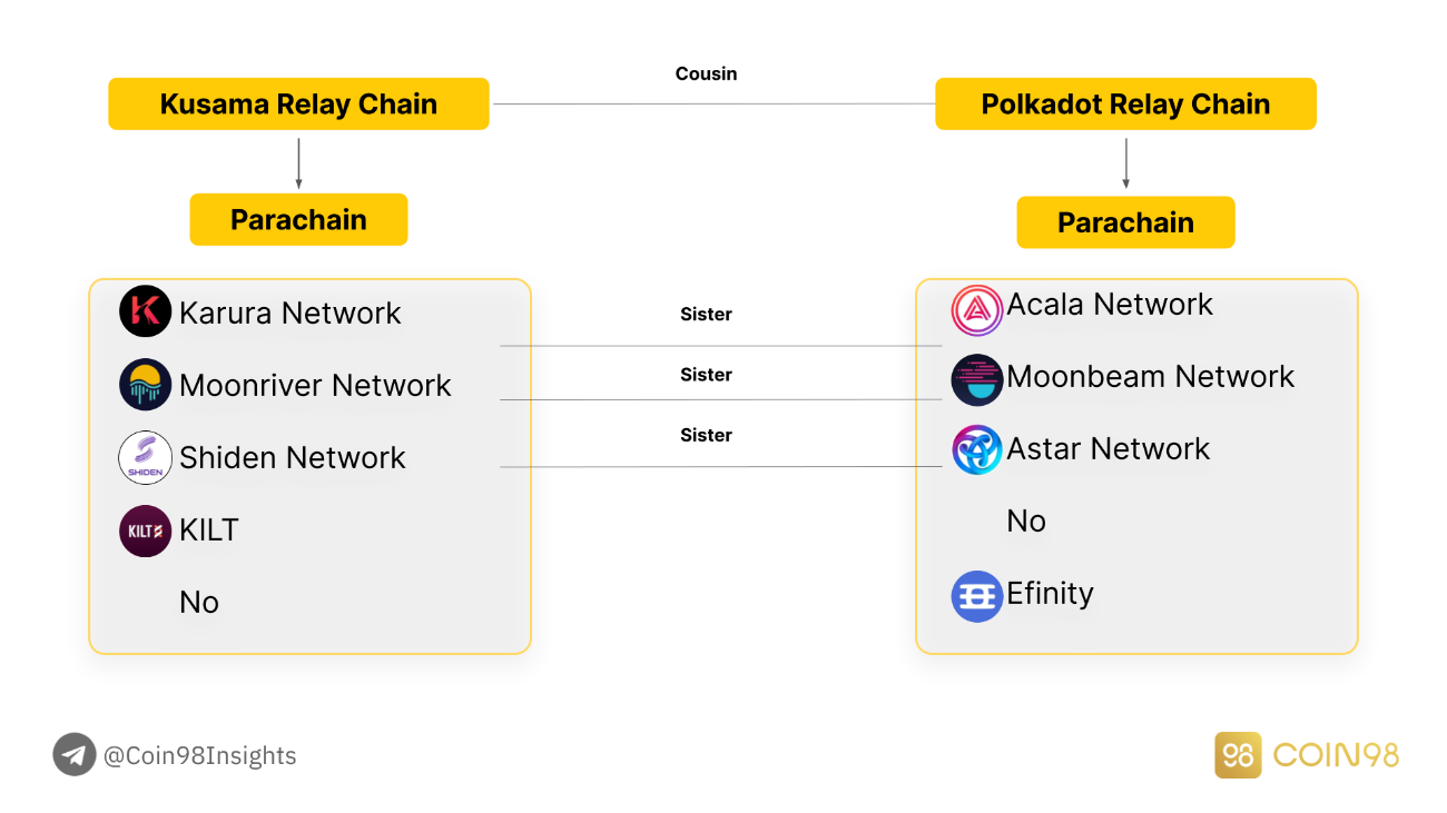 The illustrated picture below will clearly show the relationship between Kusama & Polkadot, Parachain & Parachain