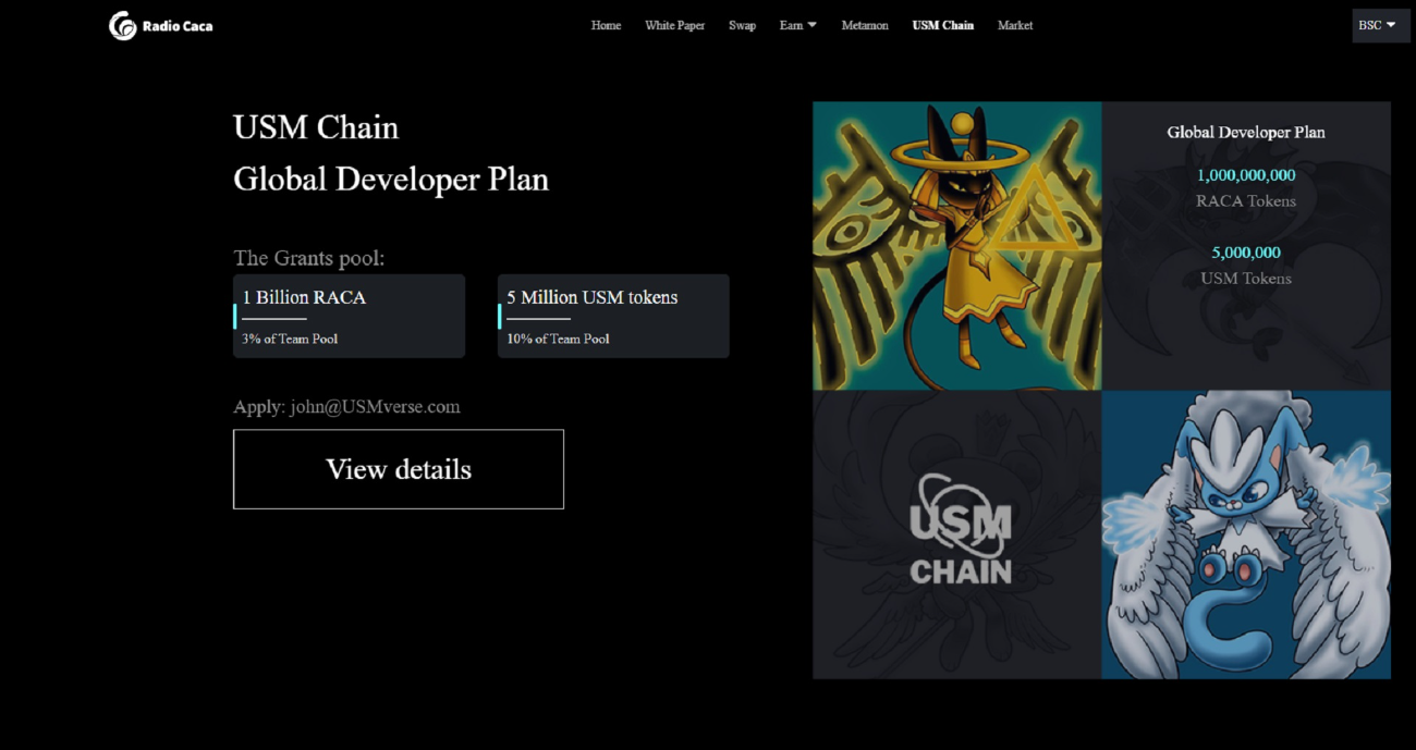 The long-term goal of Radio Caca is to launch a public blockchain called USM Public Chain built on Ethereum. The chain will be interoperable with other public chains such as Ethereum and Binance Smart Chain.