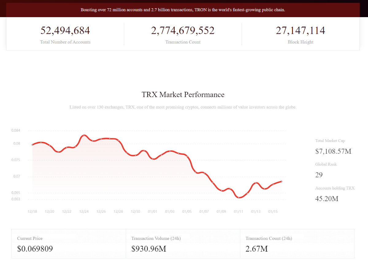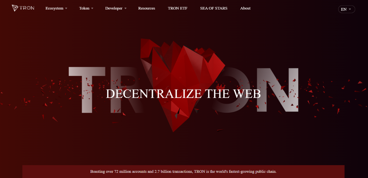 Tron is a project that has been around for a long time since 2017. The numbers on Tron's homepage are also quite impressive with more than 2.7 billion transactions and 72 million accounts made on Tron's network.