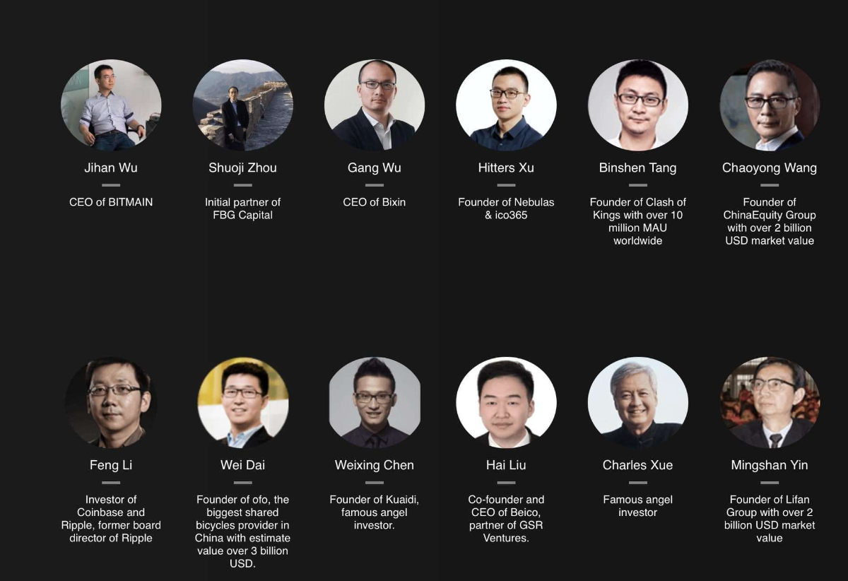 The project has raised $70 million USD from its investors in 2017. Jihan Wu (CEO of Bitmain), Feng Li (Investor of Coinbase) and other famous investors in the industry are in the list below.