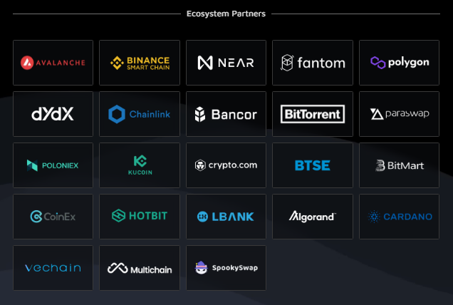 Ngoài ra, WOO Network còn có một số đối tác ở tầm hệ sinh thái như Binance Smart Chain, Near, Avalanche, Polygon, Cardano, Chainlink với hệ thống oracle khổng lồ...